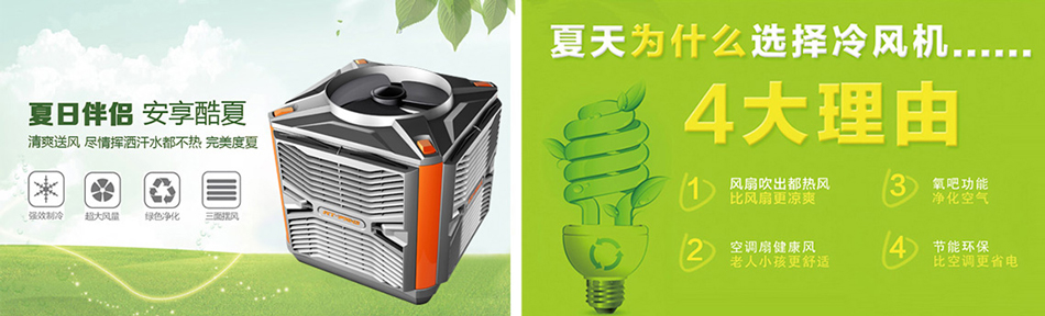 冷風(fēng)機,又稱蒸發(fā)冷風(fēng)機,是一種集降溫、換氣、防塵、除味于一身的蒸發(fā)式降溫?fù)Q氣機組。冷風(fēng)機除了可以讓企業(yè)車間、公共場所、商業(yè)娛樂場合帶來新鮮空氣和降低溫度之外,還有一個重要特點----節(jié)能、環(huán)保!它是一款全新無壓縮機、無冷媒、無銅管的環(huán)保產(chǎn)品,主要部件核心-----蒸發(fā)式濕簾(多層波紋纖維疊合物)及1.1KW的主電機/是傳統(tǒng)中央空調(diào)耗電1/8,能為各行業(yè)更實在的省電。