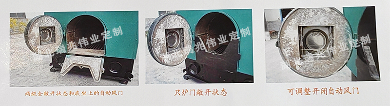 采用新式的兩級(jí)式套裝爐門,在增加了儲(chǔ)煤量的同時(shí),也方便了煤渣的清理。爐門上的自動(dòng)風(fēng)門,在正常燃燒時(shí),根據(jù)燃煤的情況適當(dāng)調(diào)整開(kāi)啟幅度,提高了煤的燃燒效率,可減少煙塵黑度。而在停止工作時(shí),會(huì)自動(dòng)關(guān)閉。 底坐上的自動(dòng)風(fēng)門,在引煙機(jī)啟動(dòng)時(shí)也會(huì)自動(dòng)開(kāi)啟,而在進(jìn)入封爐狀態(tài)時(shí),自動(dòng)關(guān)閉。這樣爐膛會(huì)進(jìn)入相對(duì)密閉的狀態(tài),隔絕了爐膛內(nèi)氧氣的存在,使膛溫快速下降,實(shí)現(xiàn)了有效的封爐。