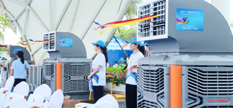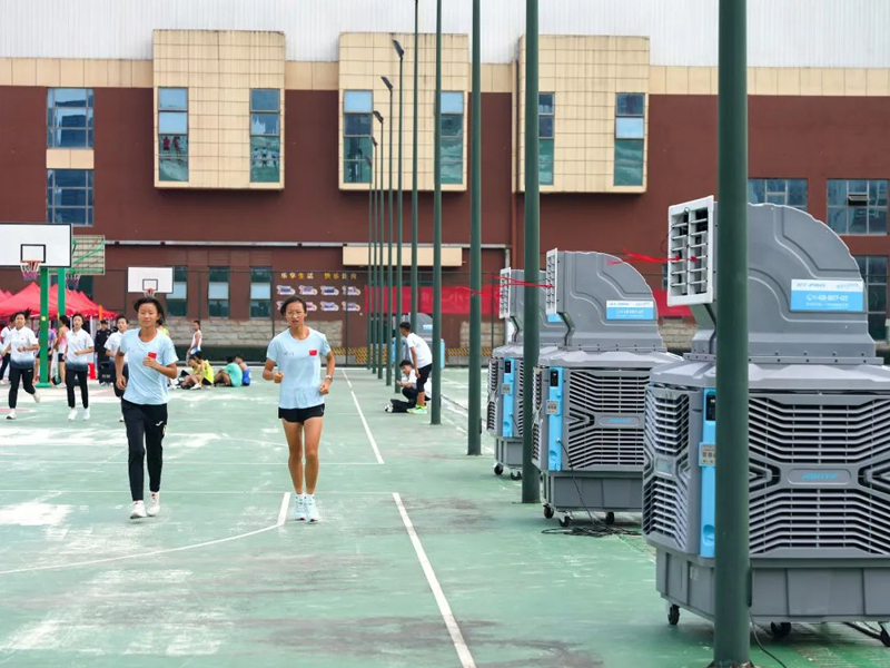 本次活動(dòng)期間,瑞泰風(fēng)經(jīng)過(guò)現(xiàn)場(chǎng)實(shí)地考察,科學(xué)規(guī)劃,一次性投放了30套移動(dòng)冷風(fēng)機(jī)設(shè)備,其中包括經(jīng)典版和體育版兩個(gè)系列產(chǎn)品,降溫效果顯著,安裝使用也非常便捷,確保各項(xiàng)室內(nèi)、戶外賽事活動(dòng)的順利開(kāi)展。移動(dòng)冷風(fēng)機(jī)是一款節(jié)能環(huán)保的降溫設(shè)備,尤其適合戶外使用,僅需2分鐘即可將35℃的高溫降低到26~27℃,達(dá)到人體最舒適,也是多類(lèi)體育項(xiàng)目最適宜的溫度環(huán)境。此外,移動(dòng)冷風(fēng)機(jī)送風(fēng)距離遠(yuǎn),覆蓋范圍廣,單臺(tái)設(shè)備的送風(fēng)距離可達(dá)30米,并且有效覆蓋120°扇形區(qū)域。