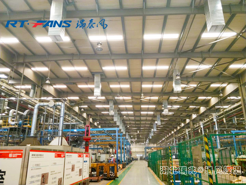 機(jī)械加工車間整體降溫通風(fēng)解決方案,湖北瑞兆為您推薦瑞泰風(fēng)“扇機(jī)組合”(瑞泰風(fēng)工業(yè)大風(fēng)扇+蒸發(fā)式冷風(fēng)機(jī)):