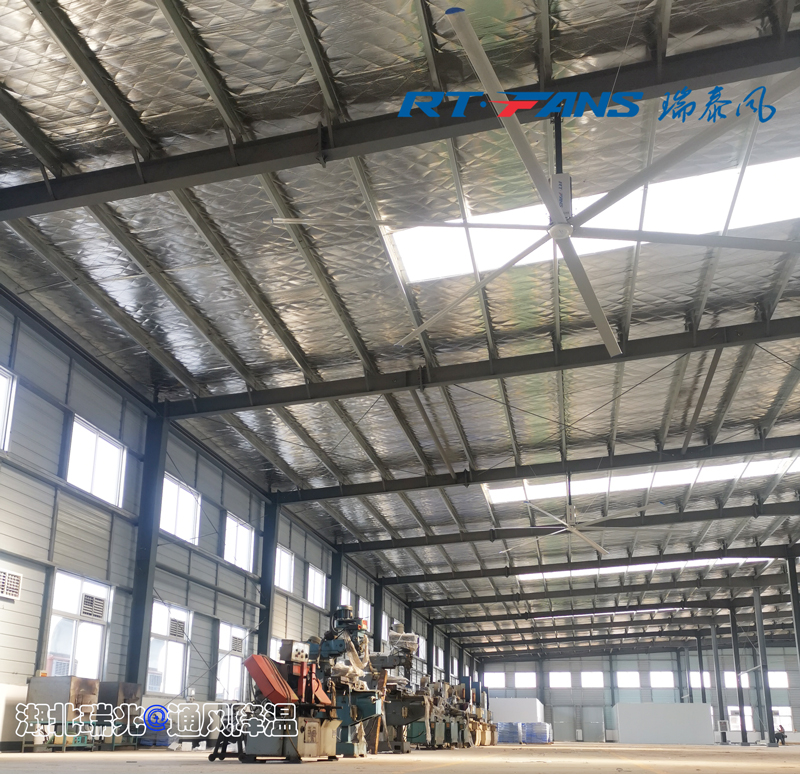 第二種方法:工業(yè)大風扇整體通風降溫 工業(yè)大風扇直徑超達7.3米,大風量、低轉速,可在整體空間產生1-3級立體自然風,覆蓋范圍可達30-50m直徑范圍,體感降溫5-8°C。 以上兩種降溫方式是目前廠房車間降溫最受歡迎的,它們不僅使工作環(huán)境更舒適健康,提升員工生產效率,還不占用廠房車間作業(yè)空間,提高空間利用率,并且環(huán)保節(jié)能,使用安全方便捷,產生的是氣流,節(jié)省的是現(xiàn)金流。