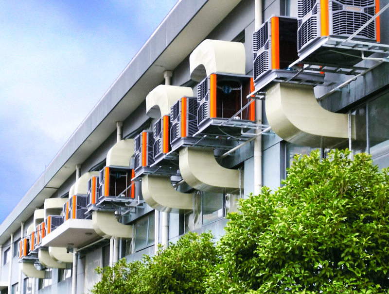 1、面積大人員少針對(duì)這種情況一般建議使用環(huán)保空調(diào)做崗位降溫,主機(jī)裝在車間外通過風(fēng)管送新鮮冷風(fēng)到車間內(nèi),在有人員作業(yè)的崗位開風(fēng)口,給這片區(qū)域的人員降溫。此方法能非常有效的解決積大人員少的車間降溫問題,而且投資運(yùn)行成本非常低。