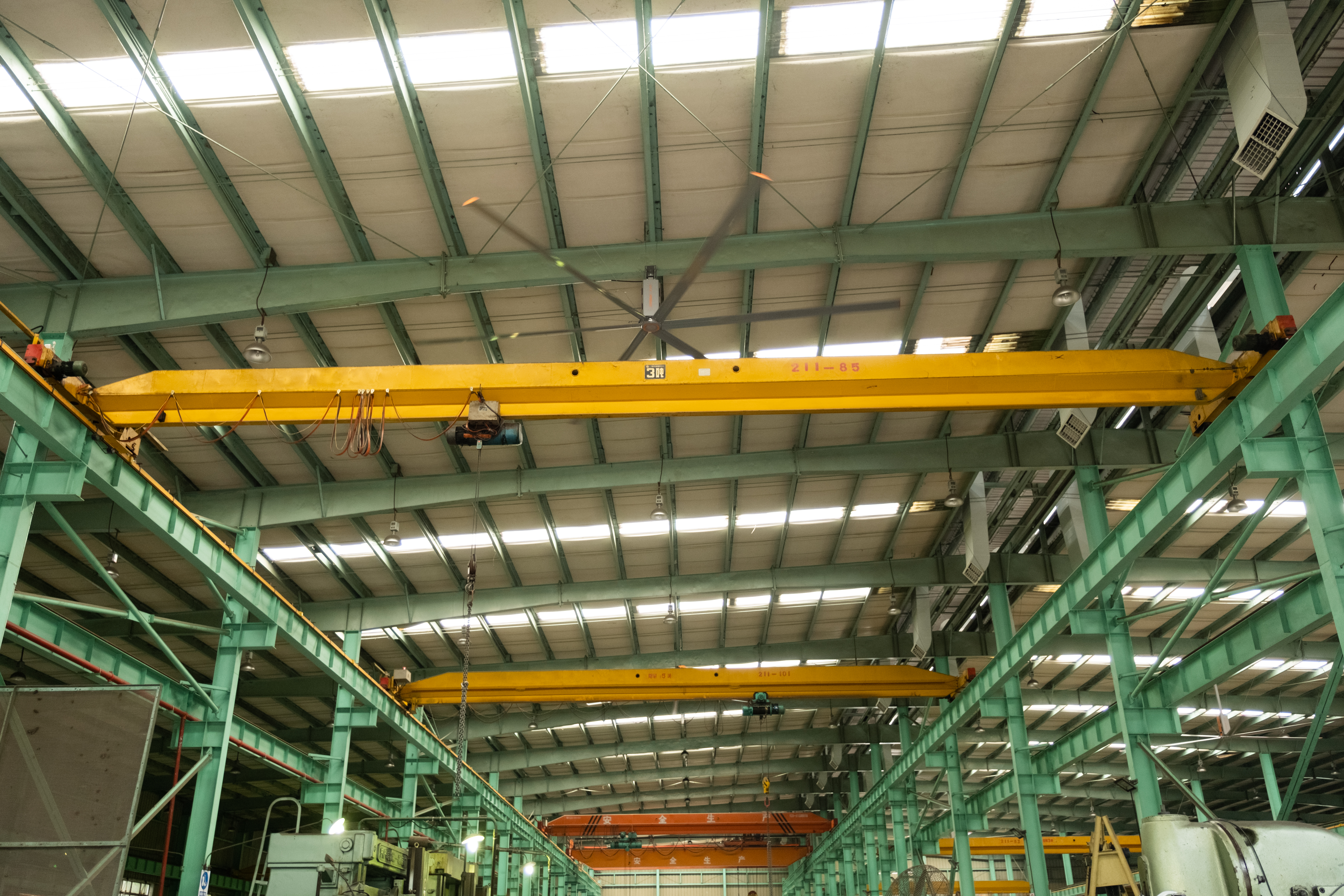 3、大型吊扇降溫法。該方法適用于大型工廠車間。工廠車間的高度必須大于5m,面積不得小于600m2。大型吊扇通過(guò)巨大風(fēng)扇葉片的緩慢旋轉(zhuǎn)在車間中攪動(dòng)空氣,形成2-3級(jí)自然風(fēng)效果。持續(xù)的自然風(fēng)加快了人體表面汗液的蒸發(fā),使皮膚表面感覺(jué)達(dá)到4-6攝氏度的溫差,大型吊扇可以在工廠車間環(huán)境中實(shí)現(xiàn)有效的整體通風(fēng)和人員的有效降溫。